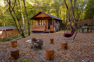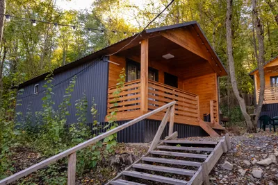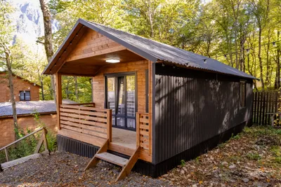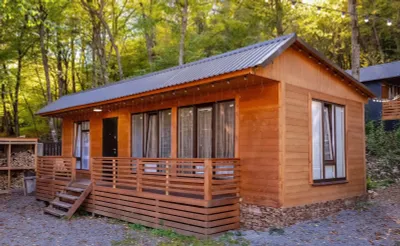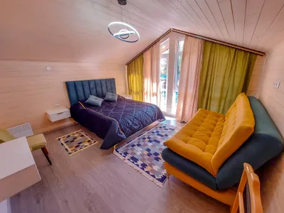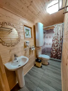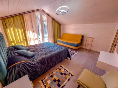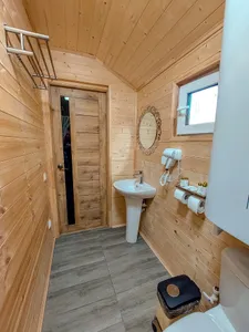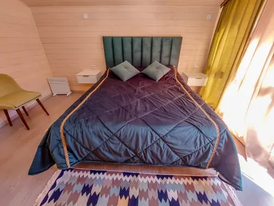 Снимали домик четырёхместный. Заселили раньше, без проблем, но уборка желает лучшего полы были грязноватые, за диваном был мусор., видно домик был не подготовлен. Возле домика идёт стройка, нет очага как на фото. Нам администратор сказал, только зимой они ставят, а мы надеялись посидеть возле костра. А так все хорошо, отдохнули хорошо.